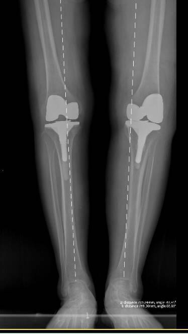 2025年6月,首先为畸形和疼痛更重的右膝实施关节置换,术后恢复良好;