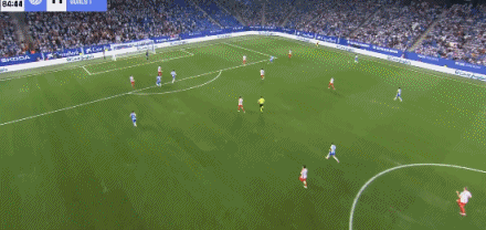 背对球门,距离球门还挺远,但就是被这名不知名球员顶进了!西班牙人进球球员名字:米利亚,有谁听说过?!这就是所谓的神仙球吧!